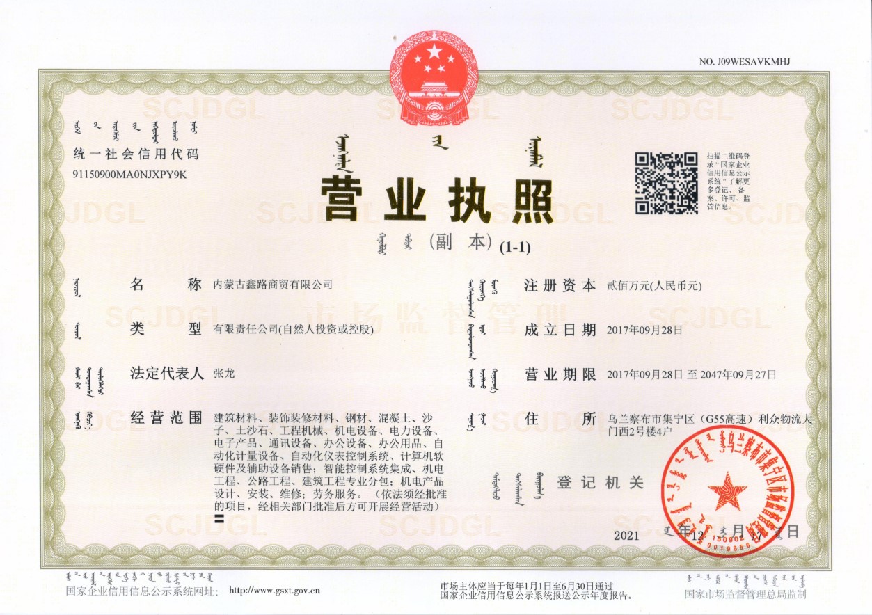 您好,歡迎訪(fǎng)問(wèn)內(nèi)蒙古鑫路商貿(mào)有限公司