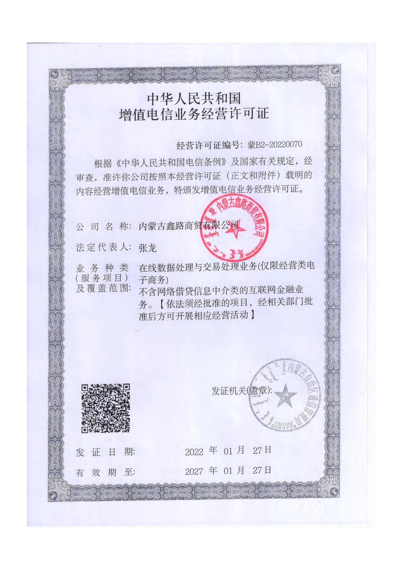 增值電信業(yè)務(wù)許可證